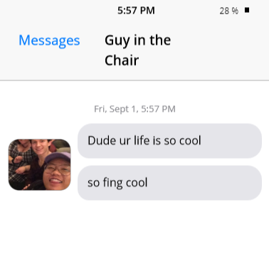 He pulled up a text message conversation with one quick swipe across his keyboard.